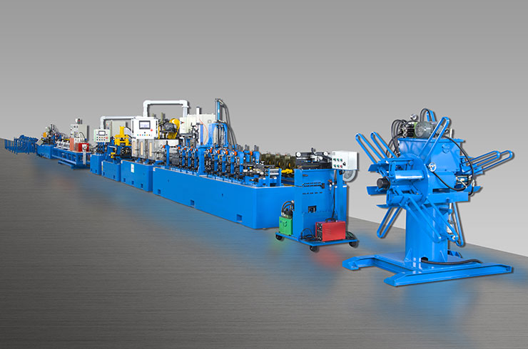 經(jīng)開卷、清洗裝置、進(jìn)料導(dǎo)向、成型、焊接、內(nèi)焊整平、外焊縫打磨、整形定徑、固熔處理、終定徑、校直、探傷、噴碼、定尺、切斷(盤卷)、接料等連續(xù)成型工藝、結(jié)構(gòu)精細(xì)、操作簡便