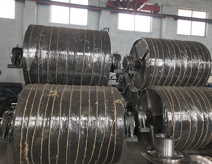 II型傳動(dòng)滾筒從制作材料上來分有鋼板卷制焊接、鑄鋼及鑄鐵3種。從結(jié)構(gòu)型式上來分有裝配輻板式、輻條式、整體輻板式3種。另外,滾筒表面也有光面、包膠、鑄膠等型式;其中,以鋼板焊接裝配輻板式鑄膠滾筒應(yīng)用廣泛。