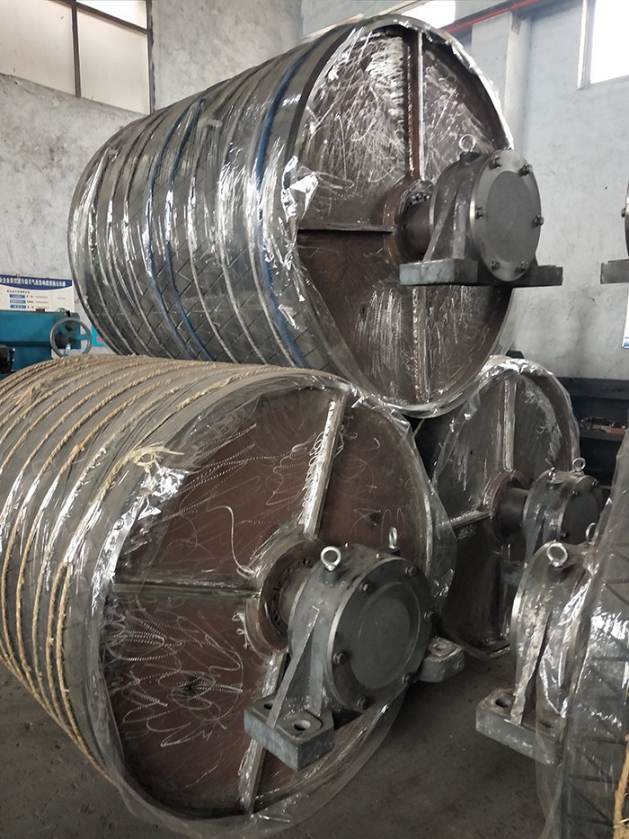 1)  鼓形滾筒。用鋼板卷圓焊接而成,中間部分筒徑大于二邊筒徑約幾毫米,目的是防止輸送帶跑偏。