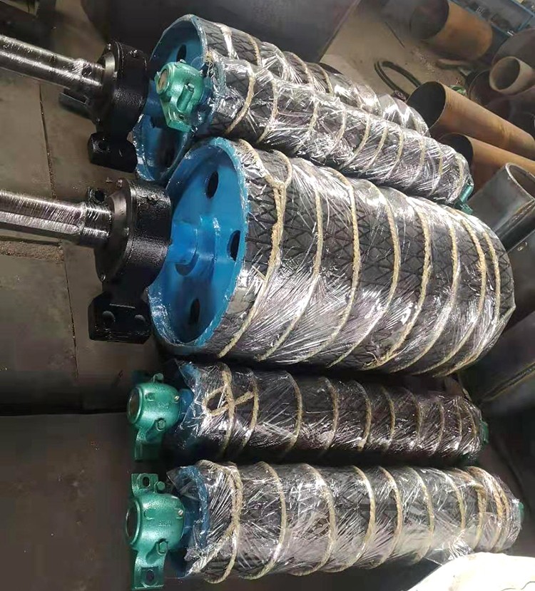 是輸送機(jī)傳遞動(dòng)力的部件,表面有光鋼面,人字形和菱形花紋橡膠覆面。小功率、小帶寬及環(huán)境干燥時(shí)可采用裸露光鋼面。人字形花紋膠面摩擦系數(shù)大,防滑性和排水性好,但有方向性。菱形膠面用于雙向運(yùn)行的輸送機(jī)。