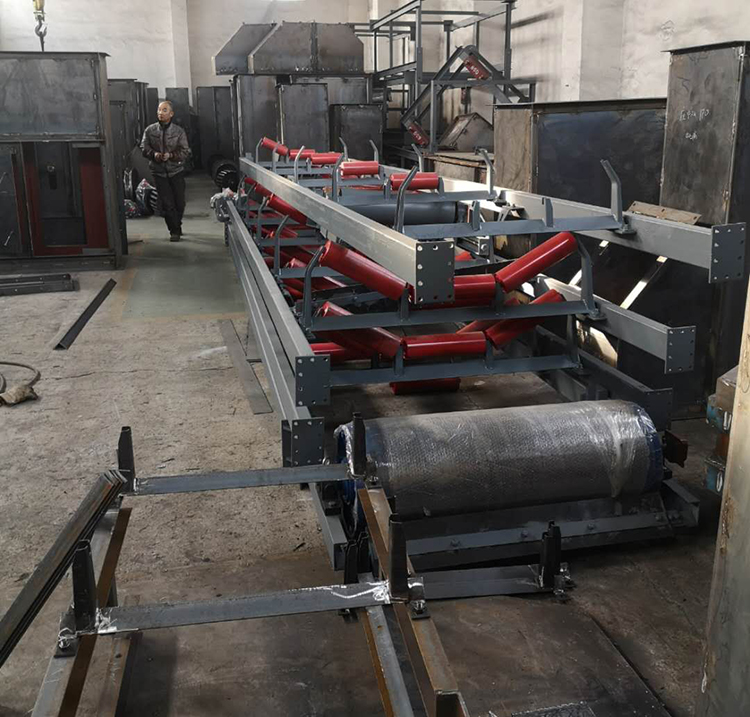 皮帶機(jī)是帶式輸送機(jī)的簡稱,有固定式和移動(dòng)式,結(jié)構(gòu)簡單,效率高。以撓性輸送帶作物料承載和牽引構(gòu)件的連續(xù)輸送機(jī)械。一條無端的輸送帶環(huán)繞驅(qū)動(dòng)滾筒和改向滾筒。兩滾筒之間的上下分支各以若干托輥支承。物料置于上分支上,利用驅(qū)動(dòng)滾筒與帶之間的摩擦力曳引輸送帶和物料運(yùn)行。適用于水平和傾斜方向輸送散粒物料和成件物品,也可用于進(jìn)行一定工藝操作的流水作業(yè)線。結(jié)構(gòu)簡單,工作平穩(wěn)可靠,對物料適應(yīng)性強(qiáng),輸送能力較大,功耗小,應(yīng)用廣泛。