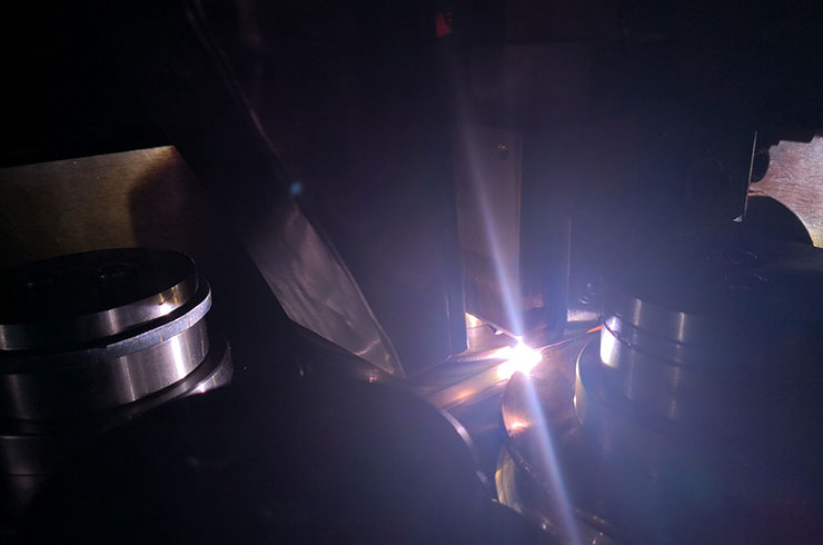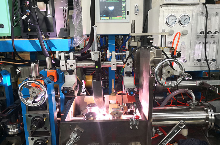 為了提高生產(chǎn)線效率,又可以獲得良好的焊縫質(zhì)量,我們公司研發(fā)的電弧焊接的穩(wěn)弧器,針對上述的問題,在電弧中間外加可以調(diào)節(jié)大小的縱向電磁場所,通過電磁力把電弧穩(wěn)定在中間或向前推,有了電磁穩(wěn)定,電弧就不會向后或左右擺動,咬邊和“駝峰”的問題就不會出現(xiàn)。所以提高了生產(chǎn)效率又保證了質(zhì)量,如圖2所示。提高速度20-30%在實際生產(chǎn)中使用得到了驗證。為了適應(yīng)不同的焊接電流和生產(chǎn)速度,可以調(diào)節(jié)電磁力的大小,適應(yīng)不同的焊接電流和速度。