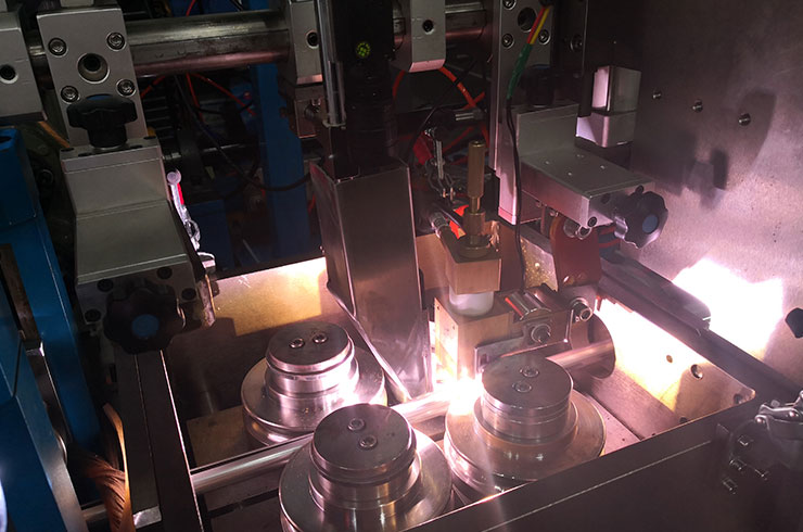 為了提高生產(chǎn)線效率,又可以獲得良好的焊縫質(zhì)量,我們公司研發(fā)的電弧焊接的穩(wěn)弧器,針對(duì)上述的問題,在電弧中間外加可以調(diào)節(jié)大小的縱向電磁場所,通過電磁力把電弧穩(wěn)定在中間或向前推,有了電磁穩(wěn)定,電弧就不會(huì)向后或左右擺動(dòng),咬邊和“駝峰”的問題就不會(huì)出現(xiàn)。所以提高了生產(chǎn)效率又保證了質(zhì)量,如圖2所示。提高速度20-30%在實(shí)際生產(chǎn)中使用得到了驗(yàn)證。為了適應(yīng)不同的焊接電流和生產(chǎn)速度,可以調(diào)節(jié)電磁力的大小,適應(yīng)不同的焊接電流和速度。