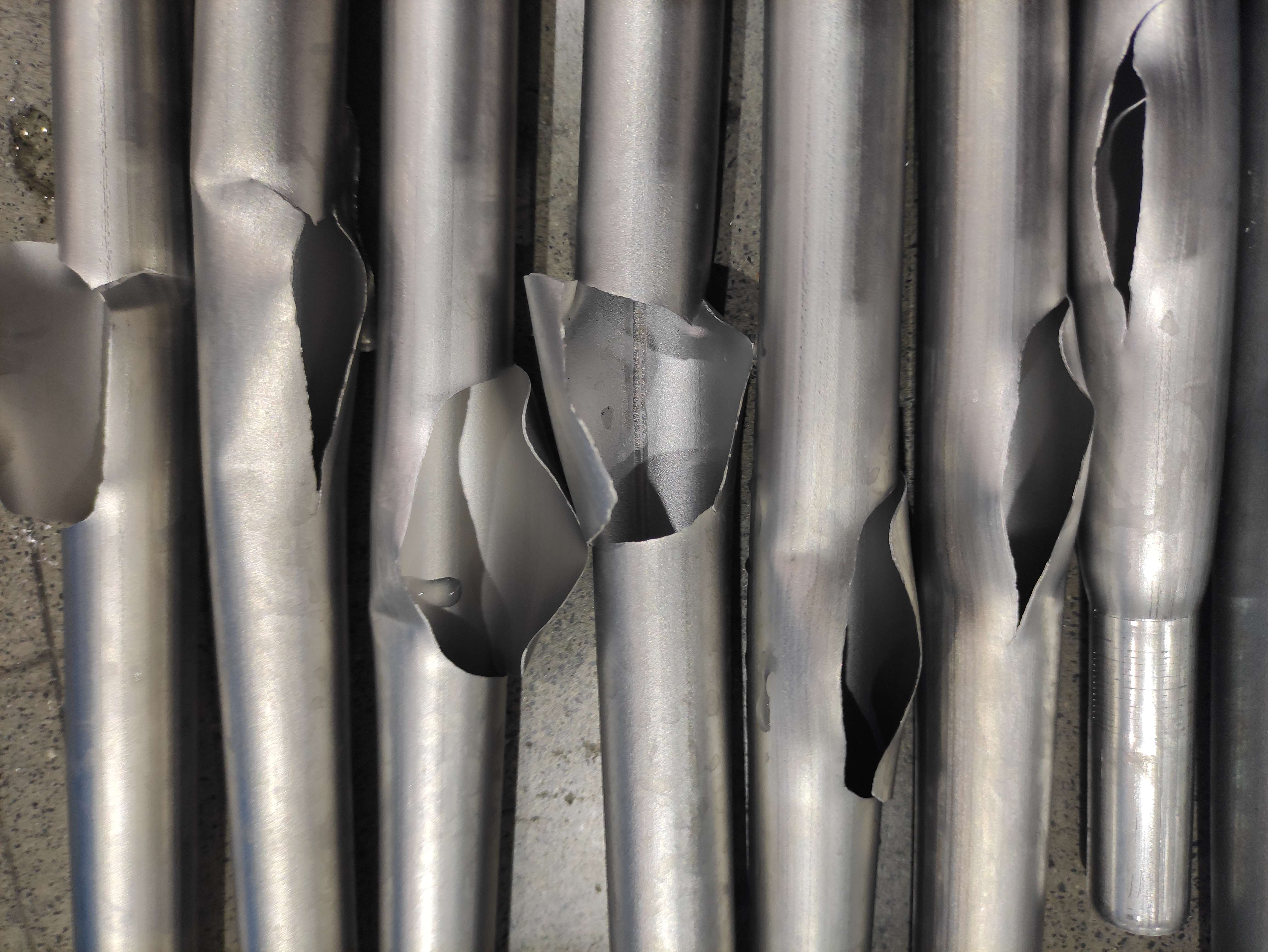 制造出來(lái)的成品管經(jīng)過(guò)爆破試驗(yàn),爆裂的地方在焊縫以外的母材,所以三陰級(jí)加雙電磁控氬弧焊焊接出來(lái)的焊縫強(qiáng)度大于母材本身。